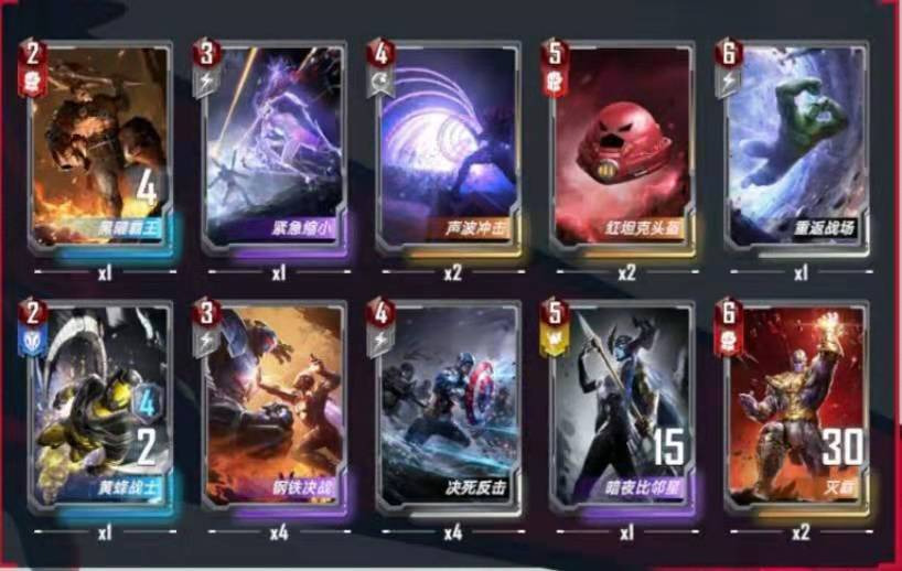 (1)本卡组灭霸的使用方法是:打出灭霸,获得响指,卖掉灭霸,使用响指,继续独行。