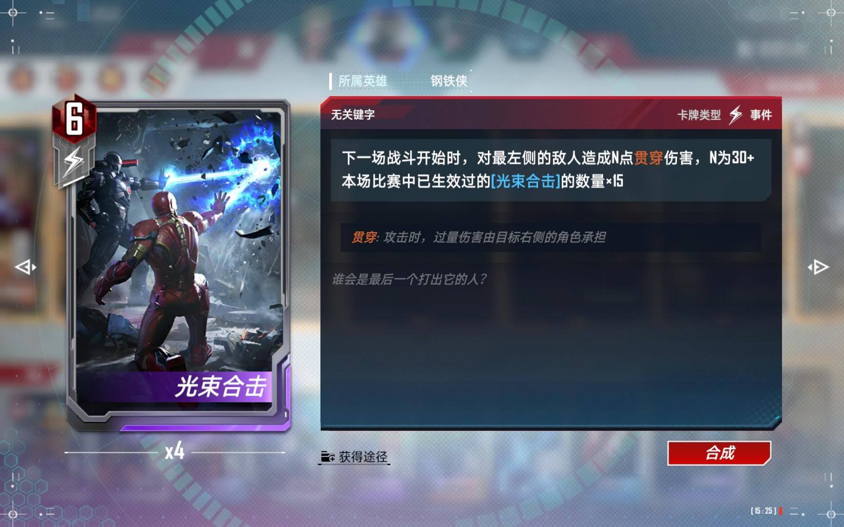 (2)除非能确定击杀对手的马维尔和光谱,否则也永远不要对惊队使用光束合击,直接用海拉独行就可以灭完。