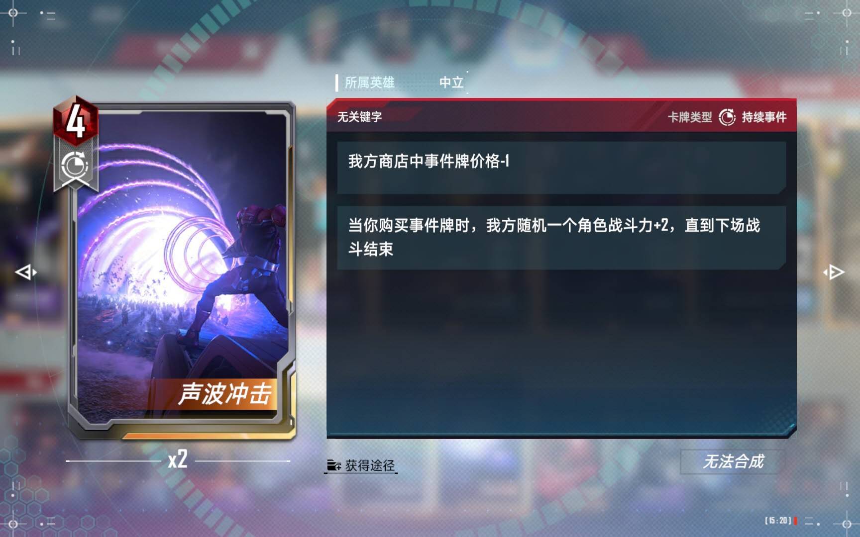 (6)找到海拉和红坦克头盔,阵容已成,这个时候才会买“声波”持续事件,在阵容成型以前,绝对不买“声波”,买了“声波”以后才大量购买事件卡牌以增加海拉本回合的攻击力。