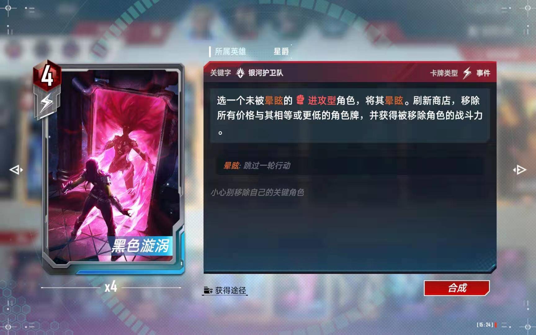如下图的悲剧:手里有黑色旋涡打不出去,因为黑色旋涡只能对未眩晕的角色使用。