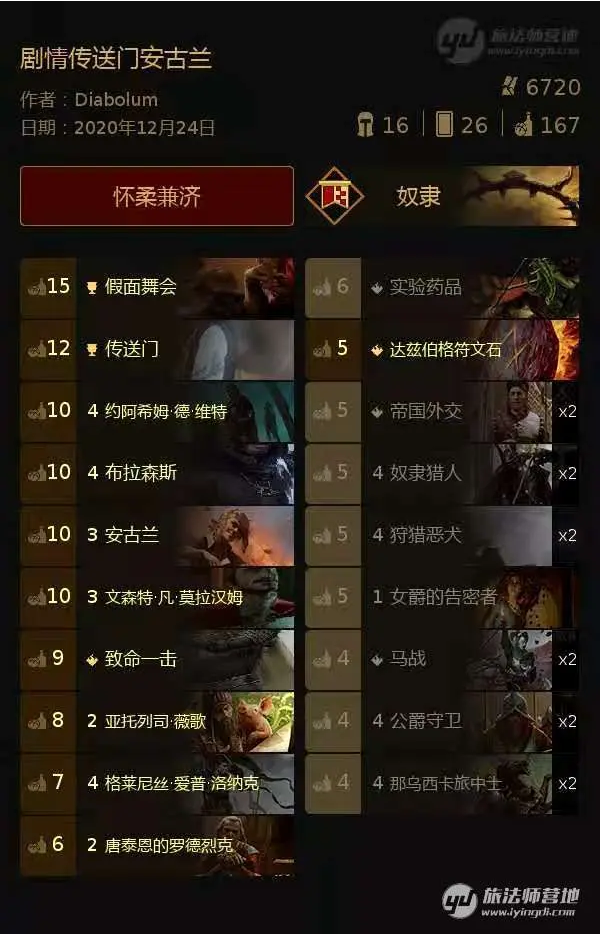 这套牌摘自昆特环境月报17期。安古兰这张牌进入大家视野,大概是因为64强赛中有一位参赛者真得带安古兰。以及席安娜(下一个部署效果触发两次)+安古兰再帝国内战的价值。安古兰这张打出对方初始牌组随机的一张神器还挺有用的,因为这个神器往往是剧情,只有群岛可能会出现图腾和熊派地点任意一个的情况。帝国则可以凭借着拿到其他阵营单位的能力推进剧情,从而实现一张剧情赢一个小局的胜利。