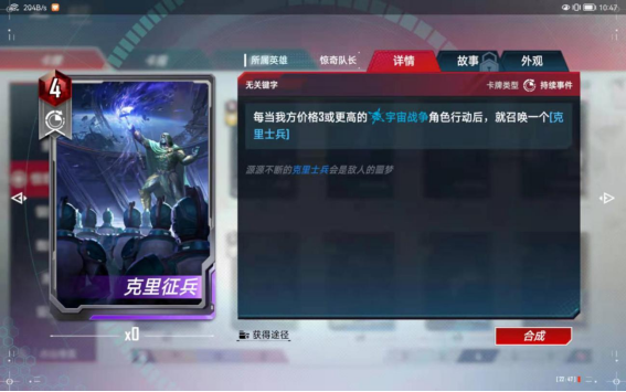 每当我方价格为3或者更高的“宇宙战争”角色行动后,就召唤一个“克里士兵”(1星)