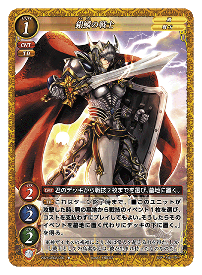 【王者之铠】:通常【DR4/龙】(伤害翻转:将你伤害区的四个龙翻转)将你墓地的一张龙充入这张卡的魂内
