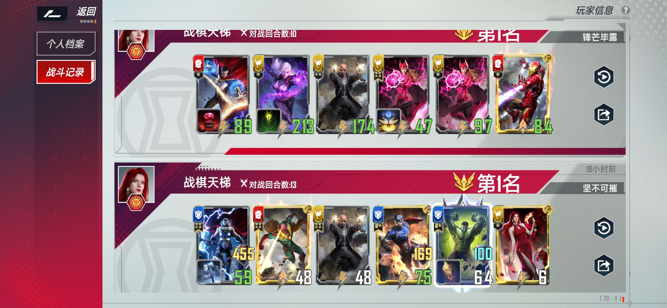复联的速5节奏可能很久没有人使用过了,这里细说一下:前两个回合拿最高战力,第一回合不跳本,第三回合如果有缩小就直接打出缩小等待跳本,如果没有缩小,血量健康则拿下商店里一些高战力卡,不刷新商店,留下一些宝石,为下回合跳本做准备。血量不健康建议尽量将战力拉高。这里注意,不管是否顺风,第三回合不要升本!第三回合不要升本!原因就在本卡组有一个核心技能:能量核心,堪称跳本神技,如果提前升本就会白白浪费掉能量核心的一张卡。