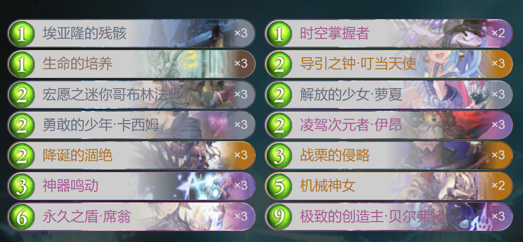 在上个版本就已经有了抬头趋势的卡组,这个版本补上“遥不可及的睿智·里维”和“工房炼金术师·诺诺”后,几乎成为了最全面的卡组,能铺能解能快攻还能憋OTK,可以说是在预览阶段就被确定的T1。