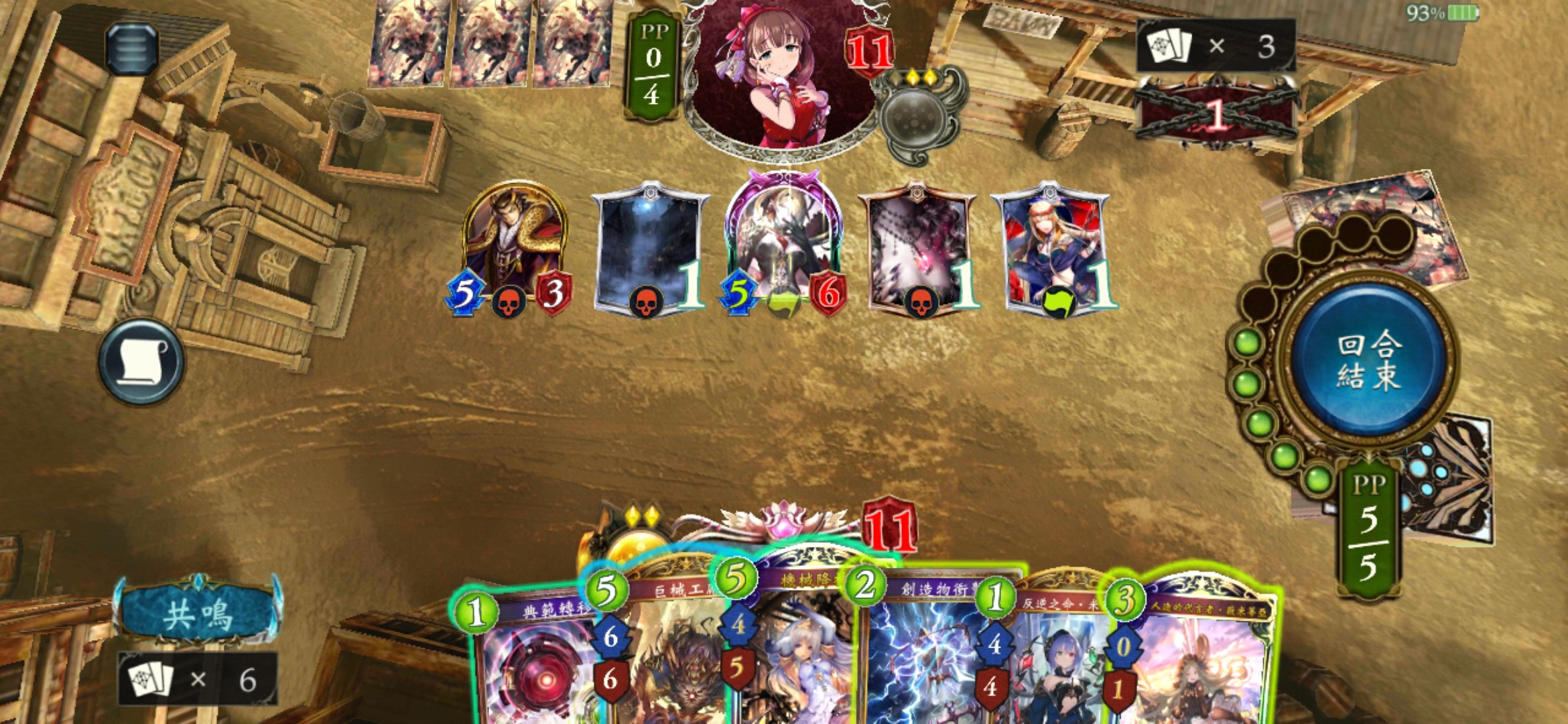 后手1c回合,出城主过,这里不开资源应该优先站场来为后面几回合抽到的水银buff做铺垫。