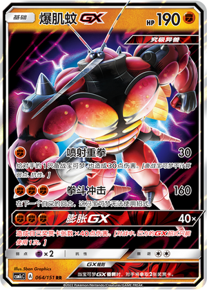 路卡利欧在此卡组中可以方便处理爆肌蚊处理起来比较棘手的宝可梦,比如上述的闪电鸟,路卡利欧1技能配合蒂安希/库库伊可以有效完成击杀。路卡利欧还弥补了爆肌蚊前期输出低的空档期,当对手的奖品数量不是异兽环的回合时,爆肌蚊是无法打出高昂伤害,就会让对手可以安心的发育,只要不拿奖品就不会有危险,而路卡利欧的存在则是让对手被爆肌蚊蹭过的宝可梦血量都非常容易进入路卡利欧的击杀范围,比如像九尾、鬃岩狼人等一阶进化GX,被爆肌蚊穿过30后,仅剩的170HP就会被路卡利欧1技能配合蒂安希头巾秒杀,爆肌蚊本质还是一个要快速拿奖品的卡组,不能给对手过多的时间去发育。路卡利欧的GX也是逼迫对手打出古兹马或者直接秒杀才可以舒服的处理。
