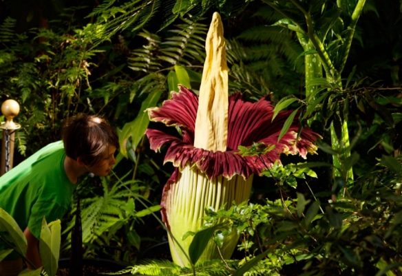 泰坦魔芋开花时散发的恶臭可以传播数公里,花期持续约两天后,就不会散发臭味。再过一周左右,整个植株就会倒塌。地下块茎会休眠长达一年,然后再次长出叶子。每隔几年,它就会以尸花的形式重新出现。