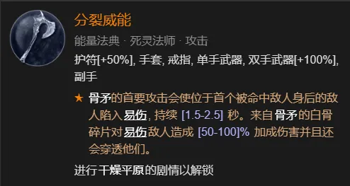 我们还能通过干燥平原的副本获取分裂威能,这个威能可以让我们的骨矛给所有被命中的敌人挂上易伤。