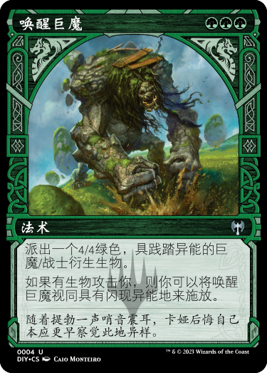 今次的剧情定制DIY是最强鹏洛客用于逃命——不对,用于掩护自己撤退所使用的法术。为表现出一种诱骗进攻的陷阱风味,最早有想过用预示这种异能去表现,也想过做成变人地(好像和诺特瓦眠丘重合了),最终还是改成附加条件的伪瞬间式闪现:每当有生物进攻你时,就可以趁它防备空虚时唤醒岩石状态休眠的巨魔,替你拦住对手。不过提勃一次性唤醒了六只巨魔呢,这十八点法术力你拿去干点什么不好——他一定有着旁人参不透的计划吧,是这样吧?