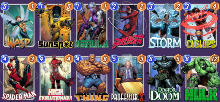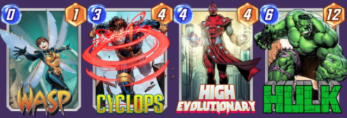 【至高进化】提供的战力提升人均超模,升级后的【黄蜂女】【镭射眼】等更是成为基本可以编入任何卡组的明星单卡,导致许多套牌纷纷带上【卢克·凯奇】作为防御手段,但仍然阻挡不住进化军团的猛烈攻势。【暴风女】【蜘蛛侠】等的区域控制与【太阳黑子】【星云】等自动成长类型的卡牌形成天然的配合,最后再用场攻相当可观的【毁灭博士】【浩克】等结束比赛,胜利方式十分简单明了。