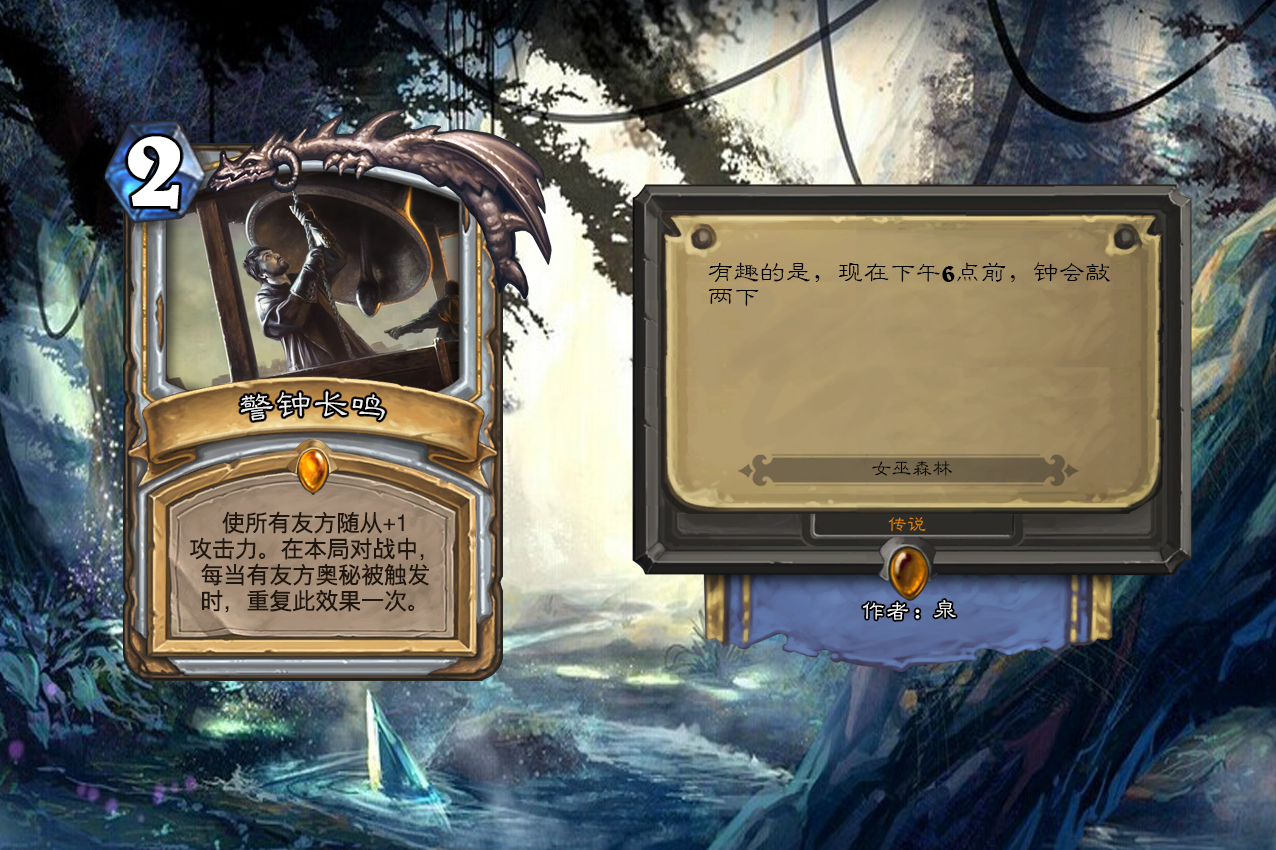 此作和女巫森林版本特色倒是相当契合,只可惜被制图疏忽所耽误。风味上可惜略显重复,女巫森林的圣骑士也缺乏与招灵巨钟配合的能力。作为设计和设计都中规中矩。有亮点设计会更受欢迎。