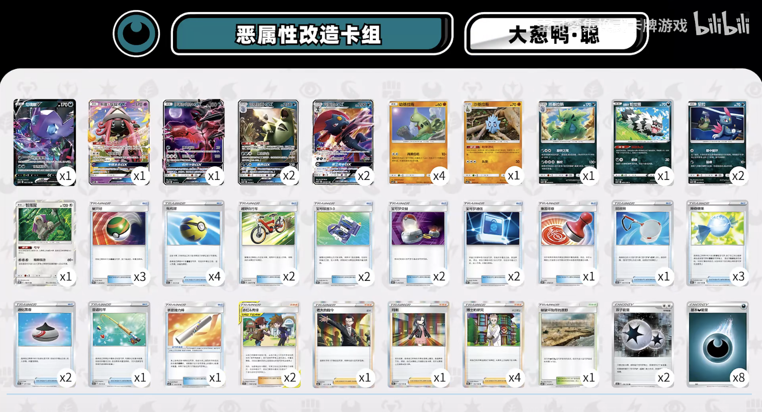对战派对卡组升级改造第7期来啦!本期大葱鸭·聪以【恶】属性卡组为基础,添加了宝可梦【玛狃拉GX】、支援者【赤红&青绿】等卡牌,让能量的附着与转附更加便利。 而杰尼龟·高则以【阿罗拉 穿山王GX】卡组迎战。通过加入【小霞&科拿】,使【阿罗拉 穿山王GX】能够在对战中使用2次甚至更多次GX招式。