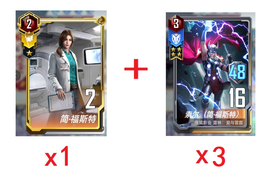 女雷神是不缺护甲的,前期反而攻击非常重要,所以带3张;
