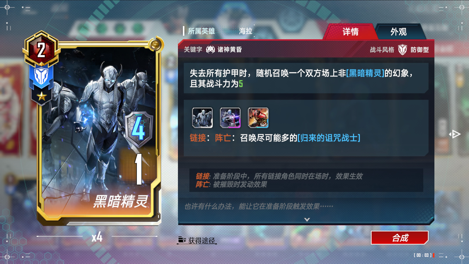 选了雷霆之力技能后,要注意场上的黑暗精灵攻击会在准备阶段+1攻击,有可能会影响到后期的节奏,所以本卡组带了四张黑暗精灵,以增加容错率。