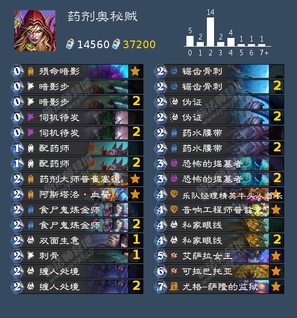 - 天梯卡组: 流放瞎,纳迦西芙法,节奏贼,机械贼,过载萨,诅咒亡灵术,奥丁战