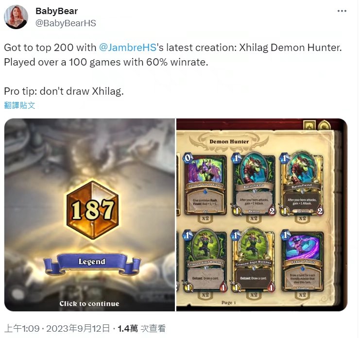2. 如果同步分享卡组到自己的b站推特,建议标上标签 #标准卡组#、#StandardHS让我们方便找寻。有任何想补充的(卡组与众不同之处、构筑思路、关键单卡分析、留牌、主流职业对局分析、打法等等)可以尽量附上