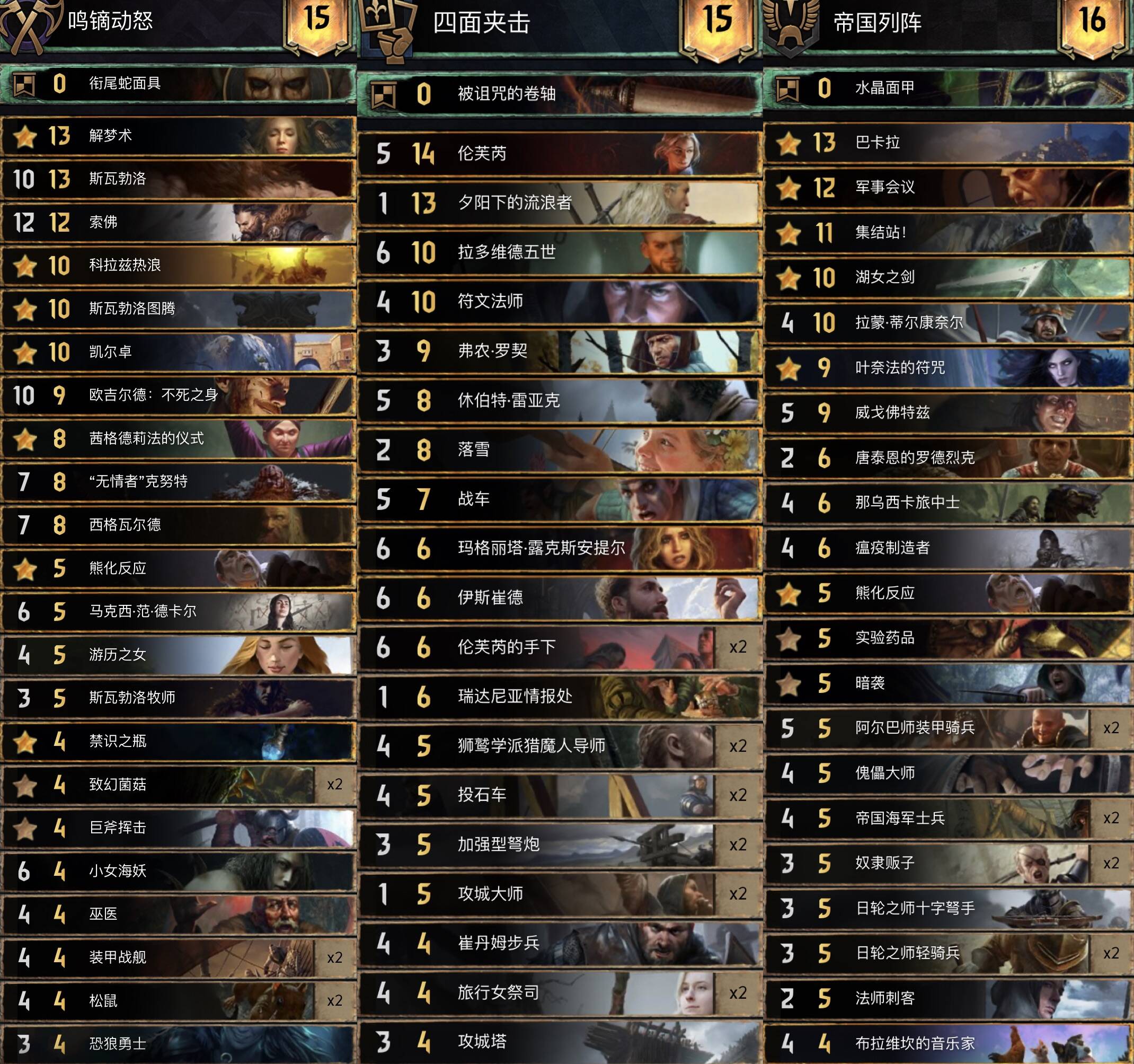 所有选手的卡表链接可看:https://tournaments.playgwent.com/tournament/ddb68ad296967b26579b115c605cab24/participants