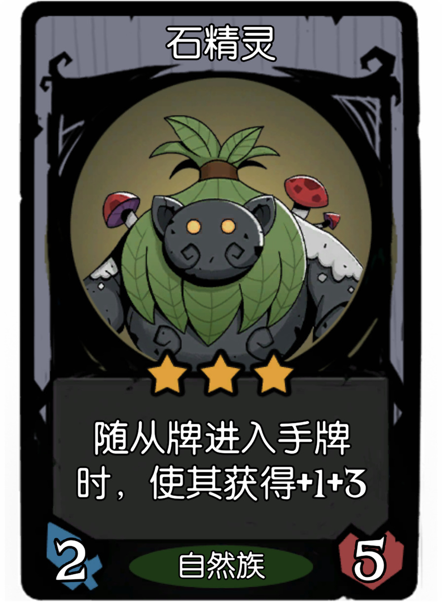 点评:盾卫的玩具!!前中期攻击力的保障。鱼美人、地灵监工必备。后期可能他加的一点攻击力不够用,如果能把它养大点的话,还是够用的,养不大就算了,还是得扔。