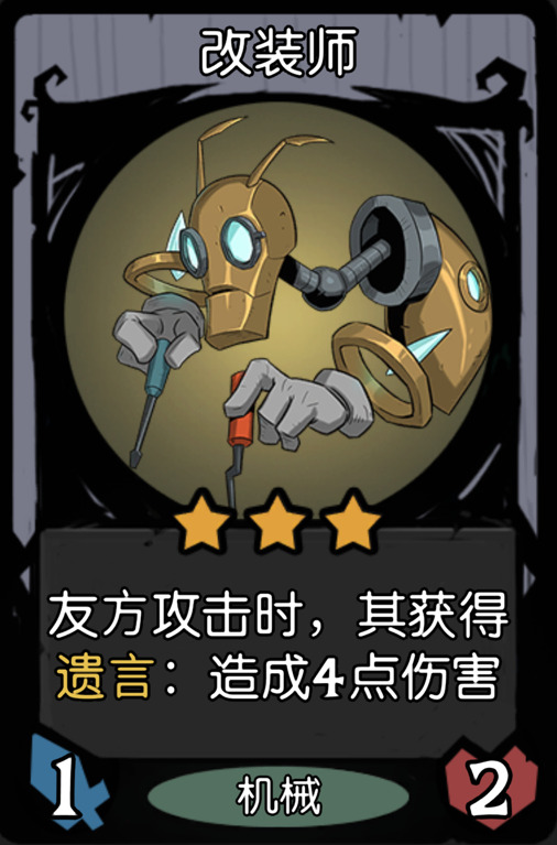 点评:烂分炮流核心,炮哥前期刷到,基本上可以定阵容了。(注意,别在野兽自然局玩,你炸不动,人家是爆刷)
