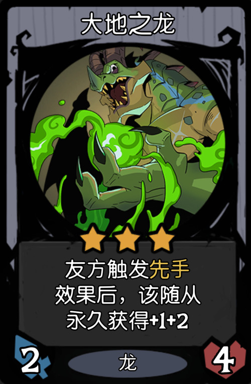 点评:3本的大号青蛙(飞龙幼崽),4点伤害可以切后排,喷两次可以破盾,先手词条能配合养地龙。