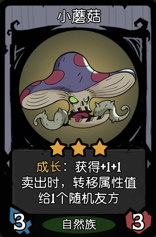 点评:自身战力不错,金蘑菇养万物!两个甚至三个金蘑菇直接造大哥!-1分只是因为不算是个核心,而且不如玫瑰盾卫,主要是不金养起来总觉得缺点儿。