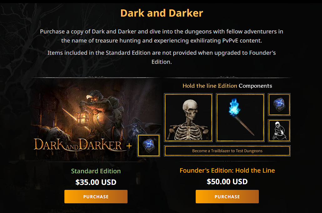 还有一种情况那就是完全没有考虑上Steam,之前中世纪类塔科夫游戏《Dark and Darker》就由于游戏版权纷争没有登陆Steam,直接开了个官网售卖游戏,对于这类已经爆火的游戏,虽然麻烦但仍然会有大量的玩家涌入,虽说会比上Steam少一些玩家,但玩家给的钱都是实打实到自己手里。