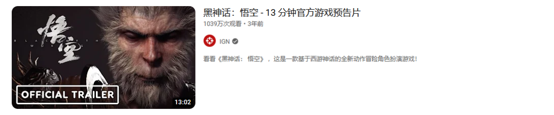 可以看出不仅是国内,国外玩家也在翘首以盼,《黑神话 悟空》的第一只预告在油管也有1000多万的播放量。斗罢艰险又出发…… 猴哥,你可要好好沉淀啊!
