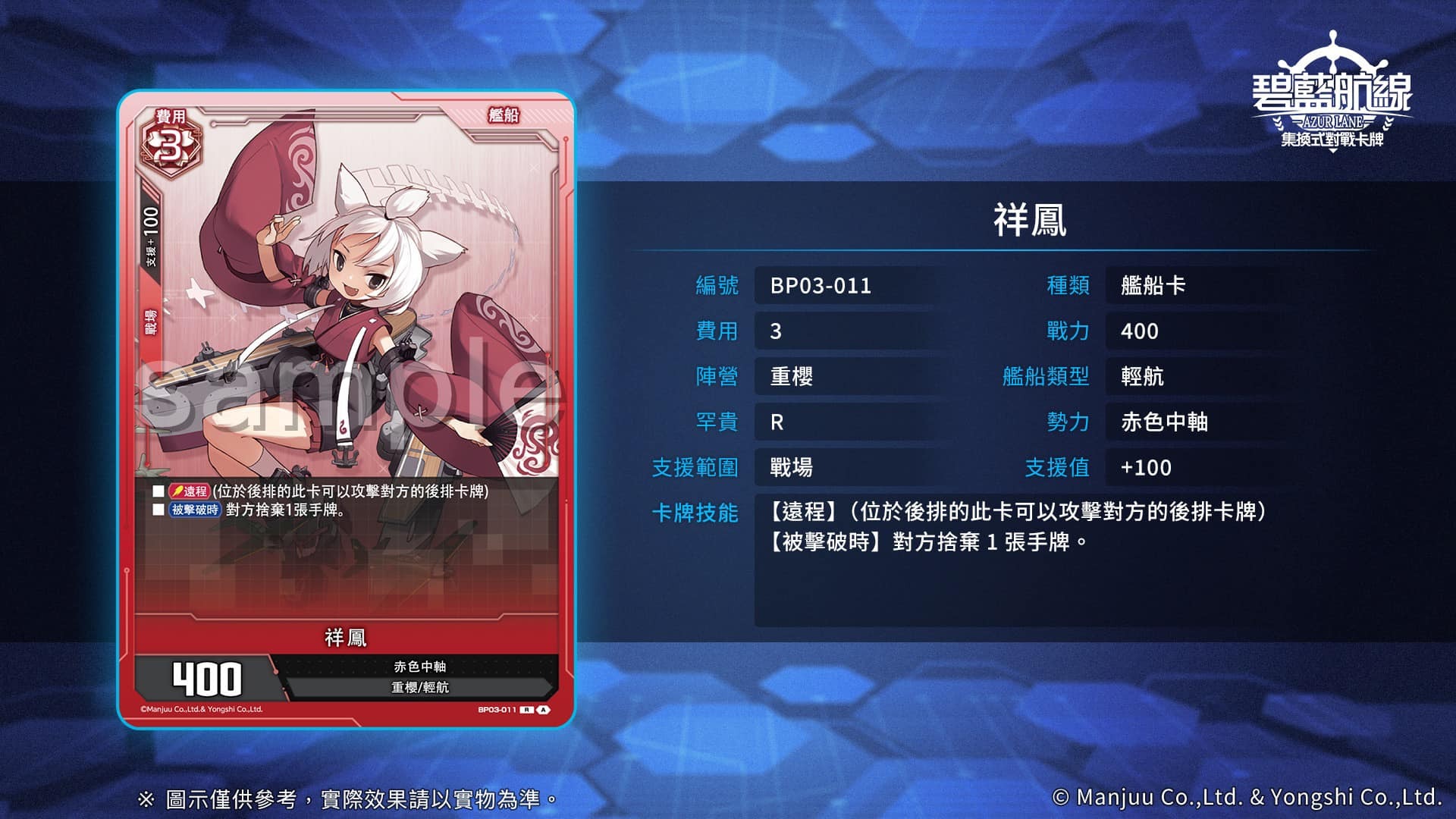 与「SD04-002松风」有著相同战力和类似技能的红色舰船卡,但与松风不同的是,她以手牌的支援范围换取了【远程】技能,这使得她可以在后排给予对手更大威胁。在此前的各类卡组构筑中,似乎都很难接受一张没有手牌支援的低费舰船卡,然而作为〈重樱〉〈轻航〉舰船,或许在【共舞海空】中,会出现能更有效地利用此类卡牌的旗舰哦!?