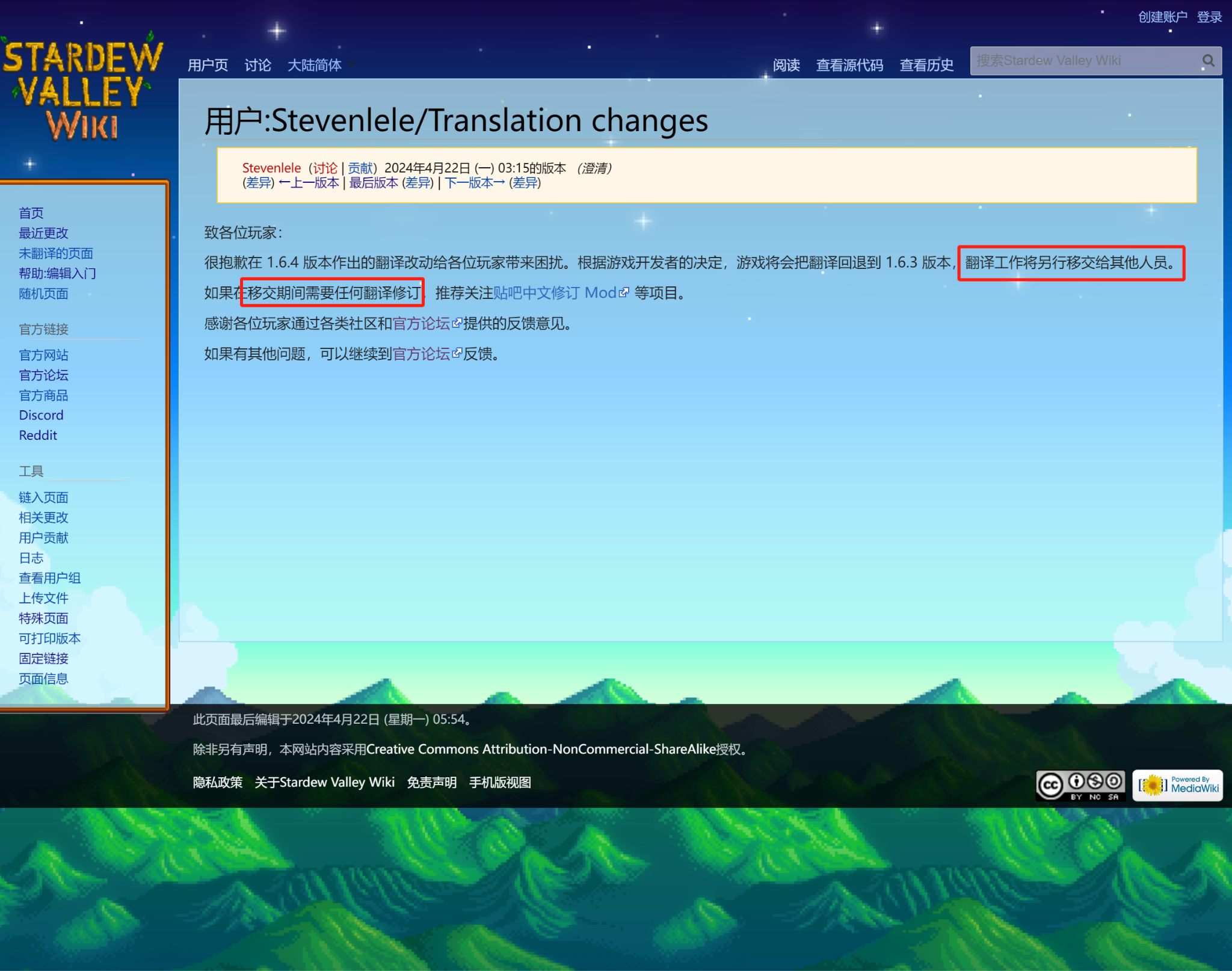 最后无辜的作者ConcernedApe只能出面发表声明,不懂中文的作者写了封中文道歉信,承诺将汉化回退到1.6.3版本。