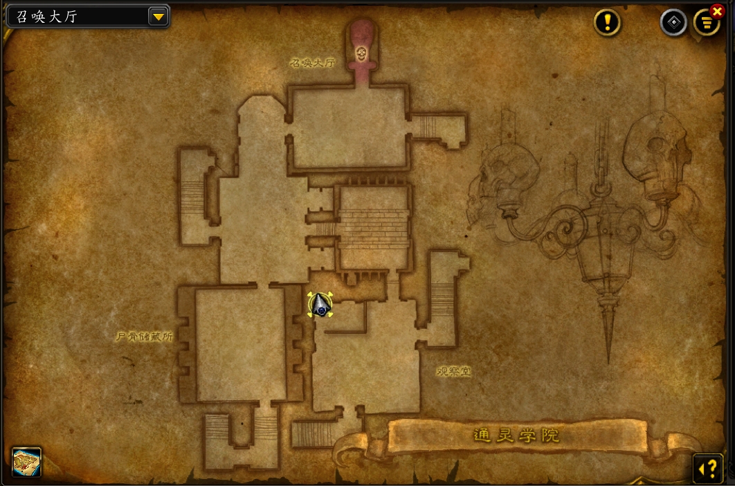 前往【H难度】的【通灵学院】,进去之后先把所有BOSS清完,清完后前往院长房间二楼,正对入口的房间(位置如图所示)。