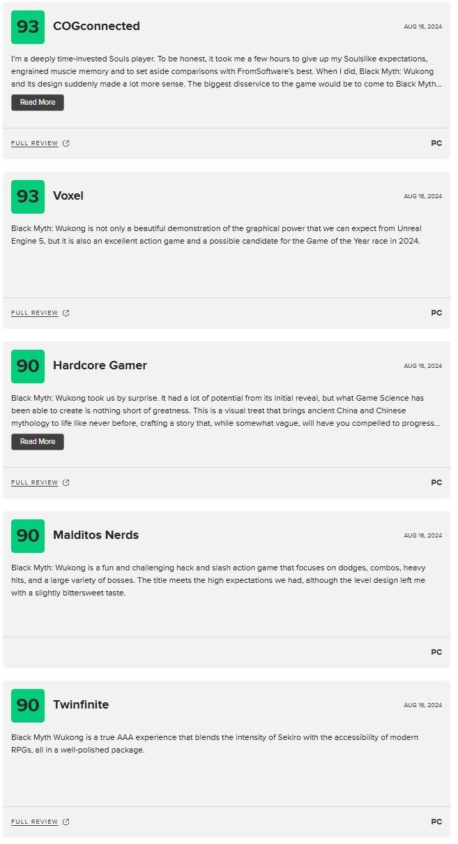 由游戏科学所带来的动作角色扮演游戏《黑神话:悟空》全球媒体评测现已解禁,解禁当日便斩获IGN和GS双8分评价。截止发稿,共47家媒体给出了82分的均分,其中好评35个,中评8个,差评0个。