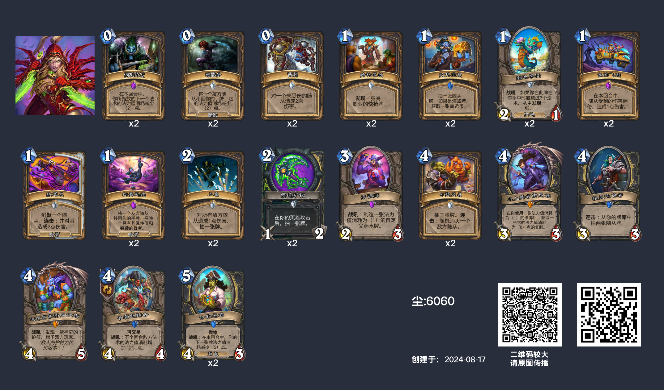 整体上来说,这套牌除了对阵过疗牧(解不掉337就要退)、污手骑(抓我们的卡组)、蓝蓝绿dk(出伤快且高)外没有什么比较劣势的对局,只要牌序好都能打一打,是一套很适合当前环境上分的卡组。