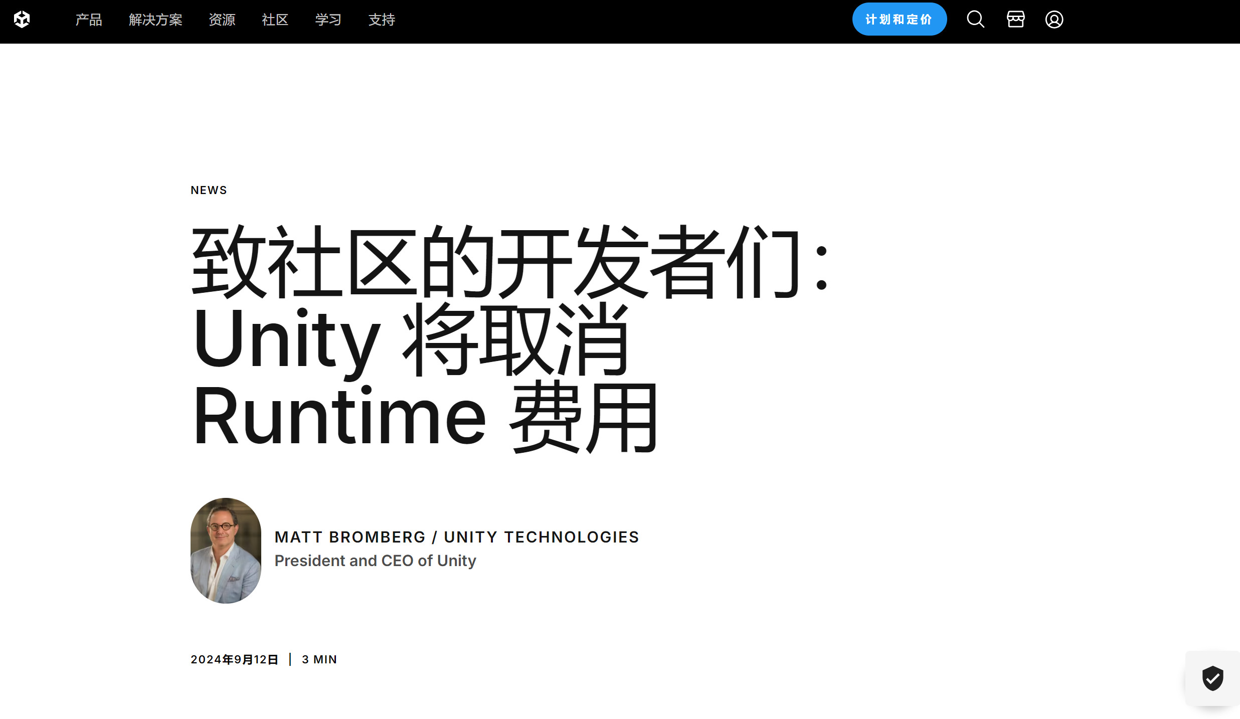 在与我们的社区、客户和合作伙伴深入沟通后,我们决定取消游戏客户的 Runtime 费用,即刻生效。非游戏领域的工业客户不会受到这一调整的影响。