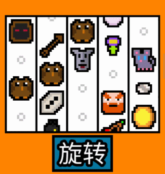 老虎机是5x4的配置,按一下下面的旋转键便可以摇了,每摇一下就会获得不同的图案,获取的金币数量也不同。