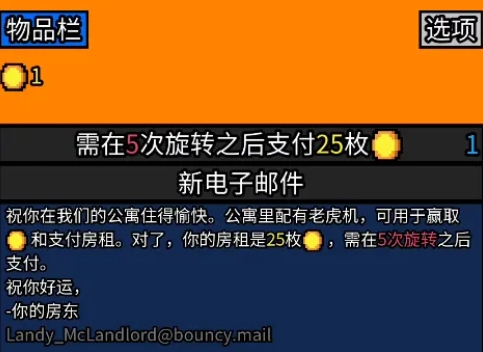 游戏的画面极其简单,而我们的任务,是要在公寓里配备的老虎机中赢得金币,每使用五次房东就会上门收取对应的金币数。