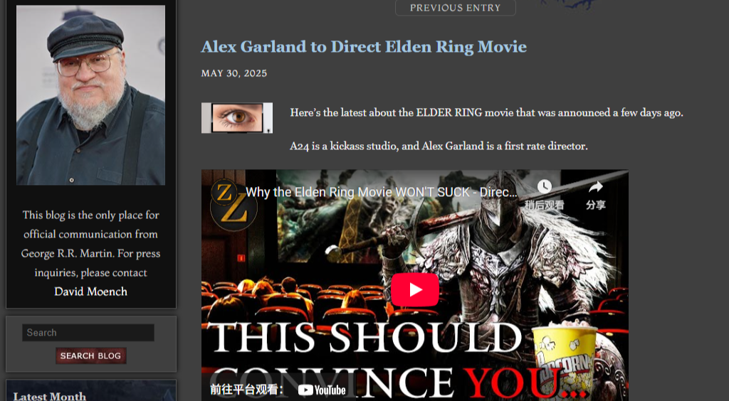 马丁在他的“Not a Blog”页面上透露,他已经看完了即将播出的《七王国的骑士》的全部六集。