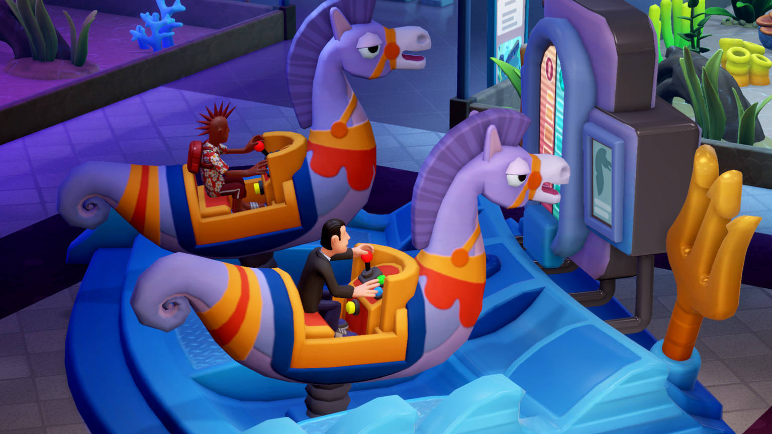 一个会前后摇晃的马型游乐设施,可以体验骑马的乐趣。跨上900磅重的纯种珊背海马,来领略赫赫有名的“湿特兰蒂斯”骑兵称霸海洋的征服快感吧。