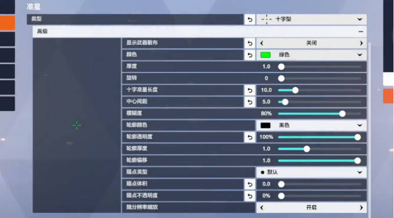 如果有FPS基础的,可以选择十字准星,外观设为绿色,轮毂设置为黑色。这样会更醒目一些。
