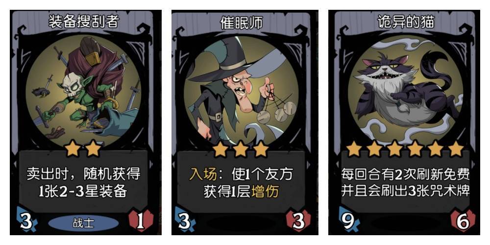 中立阵营修改了三个随从,其中俩个改动都在标准篇提到过,当然装备搜集者后面也加入了标准模式。装备搜集者的阵营从中立阵营修改成战士阵营,这样的改动提升了我们前期获得装备的难度,但影响最大的是命运之子。如果命运之子一本选择开战士的卡包,那么开出装备搜集者的概率是相当大的。诡异的猫在镜极阁楼后期的作用还是很大的,如果搜集到如湮灭、高举利刃等高本咒术是可以直接翻倍阵容战力的。