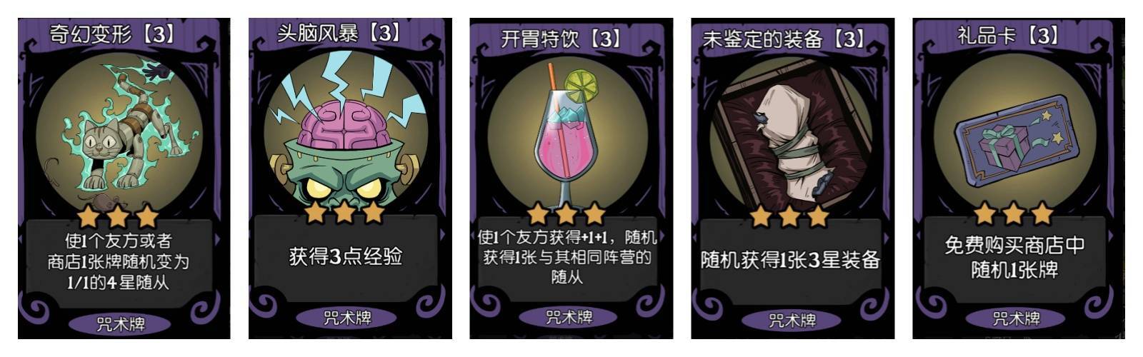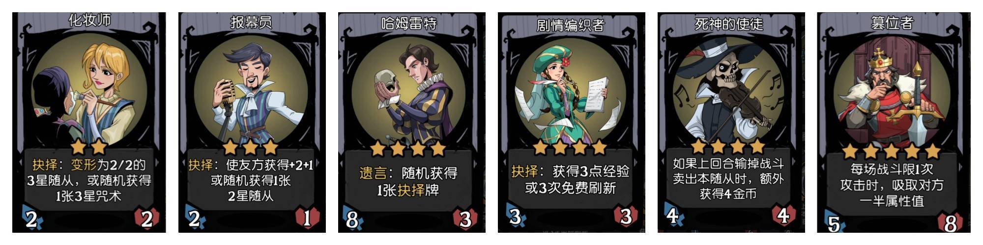 镜极阁楼独有的是俩个新随从。第一个是化妆师,效果是抉择变形为1个2/2的3星随从或者获得1张3本咒术。这张卡适合在二星遇到的时候赌一手三星咒术,如果赌出以下咒术变形奇幻、头脑风暴、开胃特饮、未鉴定的装备以及礼品卡都是非常赚的,但如果你选择了变为2/2的3星随从则收益就没有那么高的。如果后期想通过先王的怨念刷咒术,想收回3金币的购买价值还是比较难的。