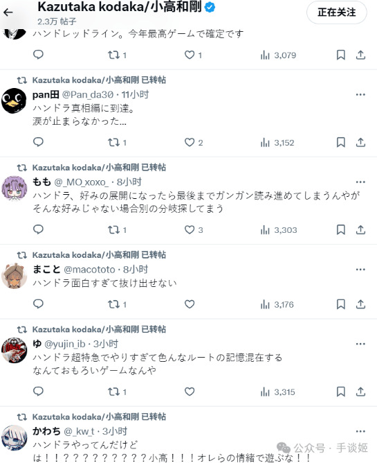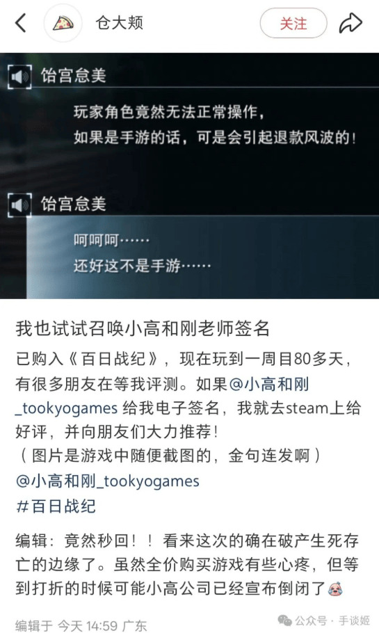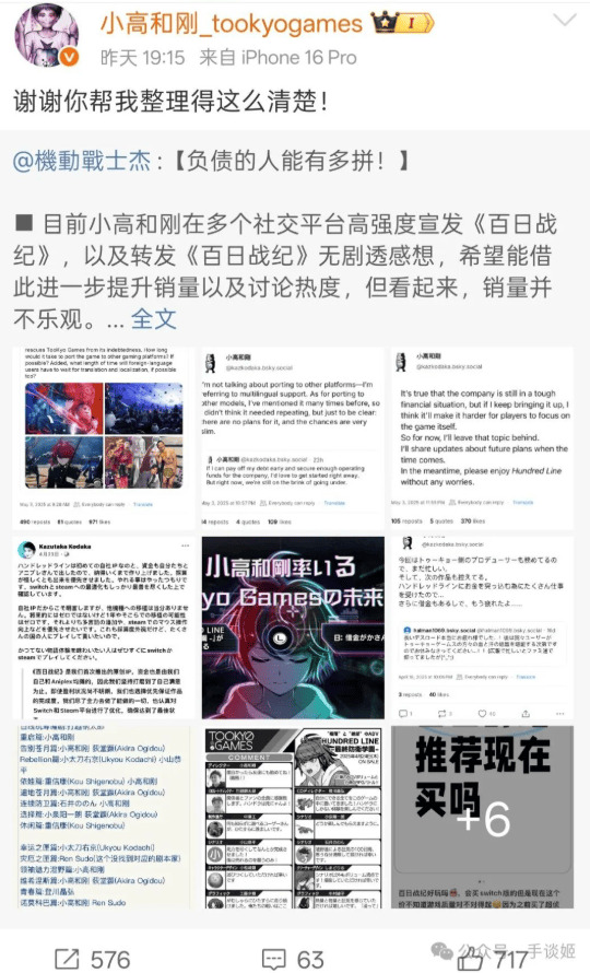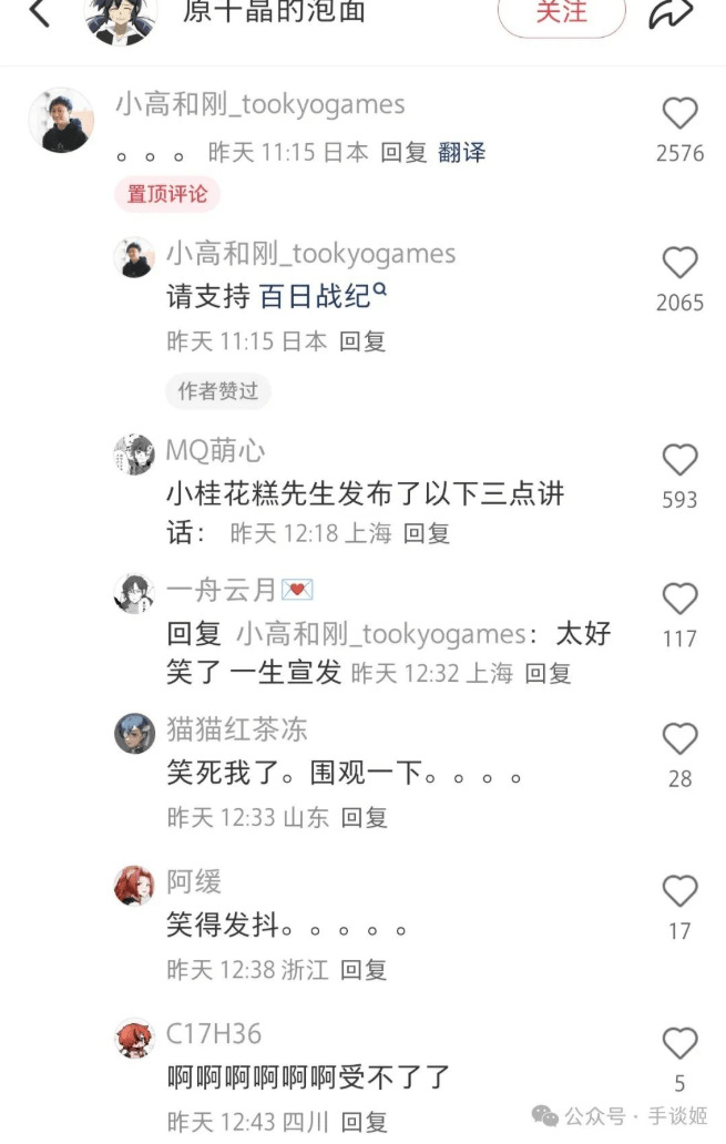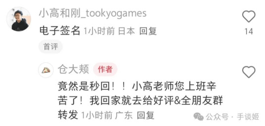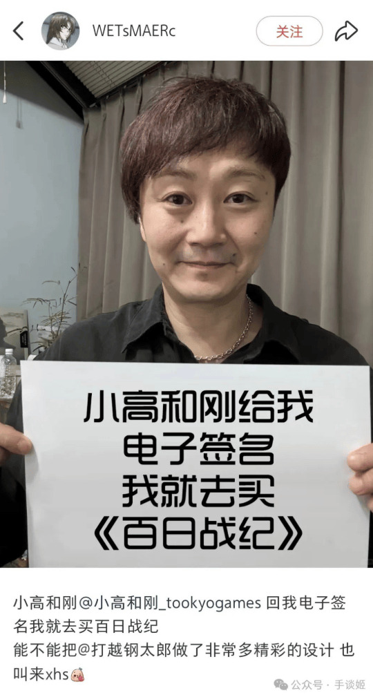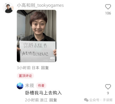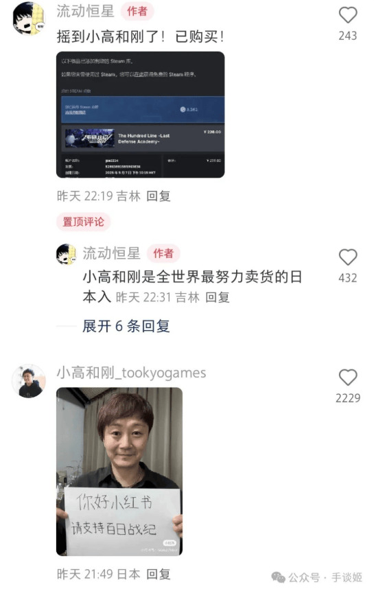 近日,小高和刚不断在小红书以及微博上为自己的游戏宣传,而且不是普通地发博文,而是会跑到其他帖子下方回复。中国的网友差点把他当成电子召唤物了,有点像拿买游戏为诱惑来对他“嘬嘬嘬”,他不厌其烦。