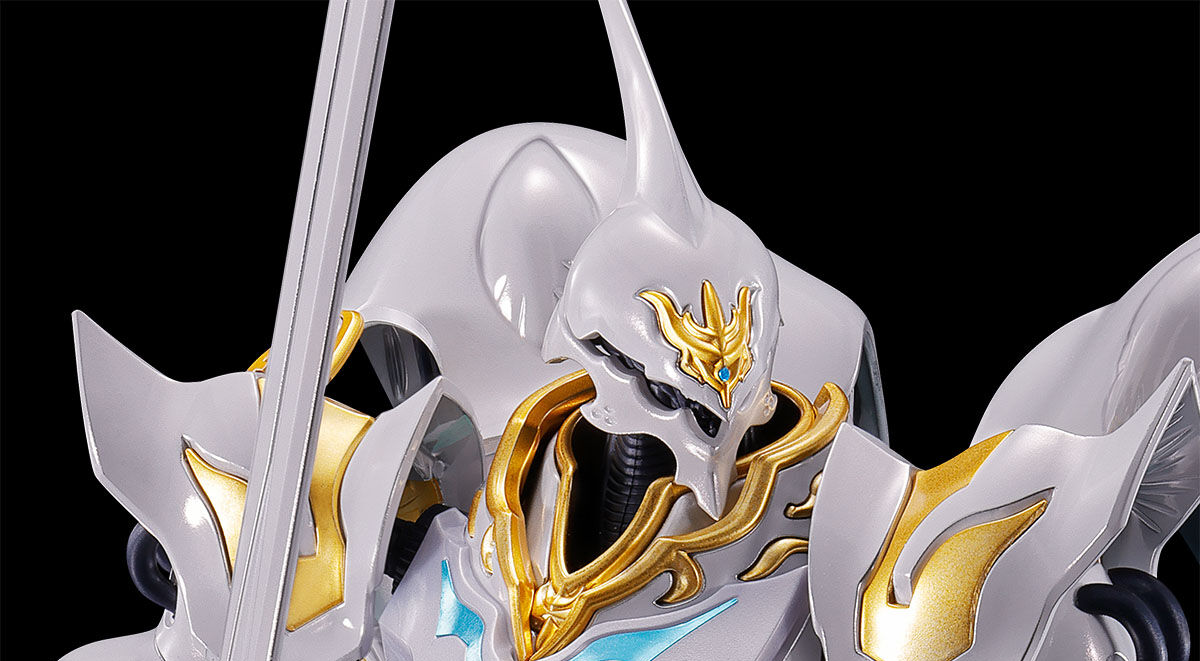 “萨拜因”携新的更换用羽翼及大型效果配件,以更添雕像之美的“白色秘宝”形态于METAL BUILD系列中登场! 本次“萨拜因”采用令人联想到传说秘宝的配色,在以雕像魅力广受好评的系列中登场。 粒子感白色涂装层层交错,展现出细腻精美的视觉效果。 为营造出雕像的站姿效果,新增反映出猛兽生物特征的羽翼。 内附覆盖于刀身的大型效果配件,全新造型带来更为震撼的效果。展现与传说中奥拉机械相符的奥拉力。
