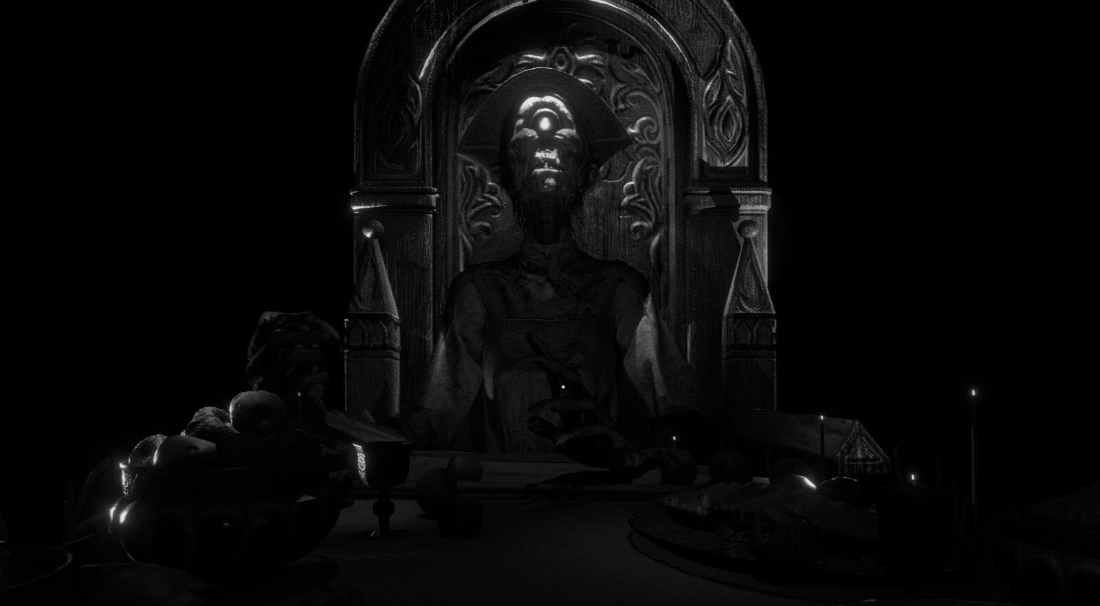火柴不仅是光源,更是解谜的关键工具——点燃障碍物、触发机关、甚至出于发泄烧掉一切可燃烧的物品。当火光突然熄灭,再度点燃时面前赫然出现一些东西时,即使你明知这个套路,依旧会被惊得心头一跳。这种周而复始的明暗交替,催生出一种挣扎的感觉。火光所及之处是你唯一能信任的真实,而黑暗深处,独眼利霍正静静凝视。
