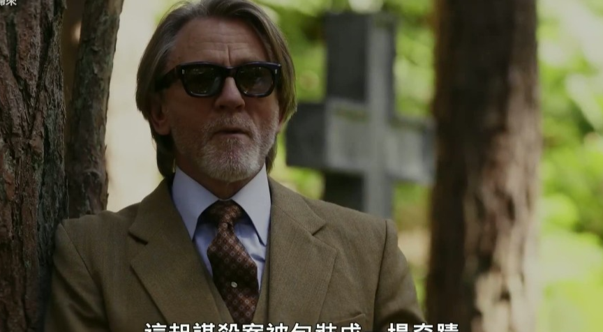 海报以哥特式教堂为背景,丹尼尔·克雷格饰演的侦探本诺特·布兰克坐在中央,周围环绕着乔什·奥康纳、格伦·克洛斯、乔什·布洛林、米拉·库尼斯、杰瑞米·雷纳、凯瑞·华盛顿等豪华演员阵容,营造出紧张而神秘的氛围。