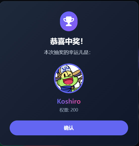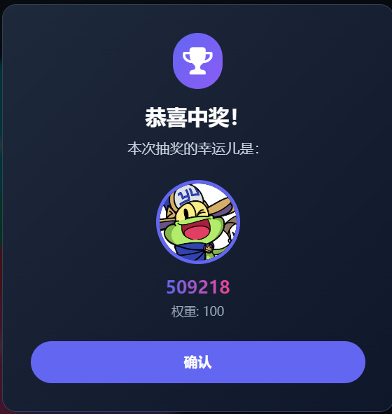 举例:打赏500营火,抽奖权重就是5,比起其他打赏100营火的玩家会有5倍的中奖几率