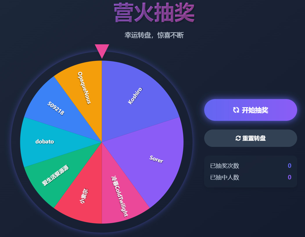 举例说明:张三打赏了500营火,李四和其他人打赏100营火,那么转盘如下,等于打赏多会增加你中奖的机会,但是并不能保证一定会中。