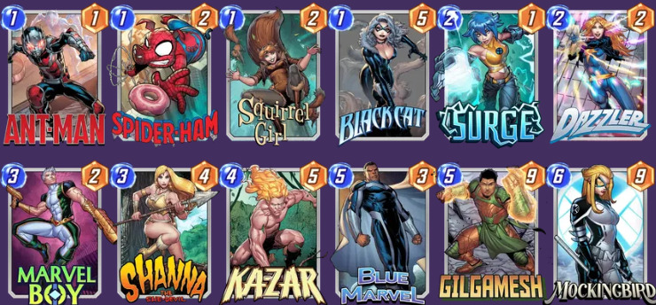 战力组件:【蚁人】【松鼠女】【黑猫】【炫音】【山娜】【卡扎尔】【蓝惊奇】