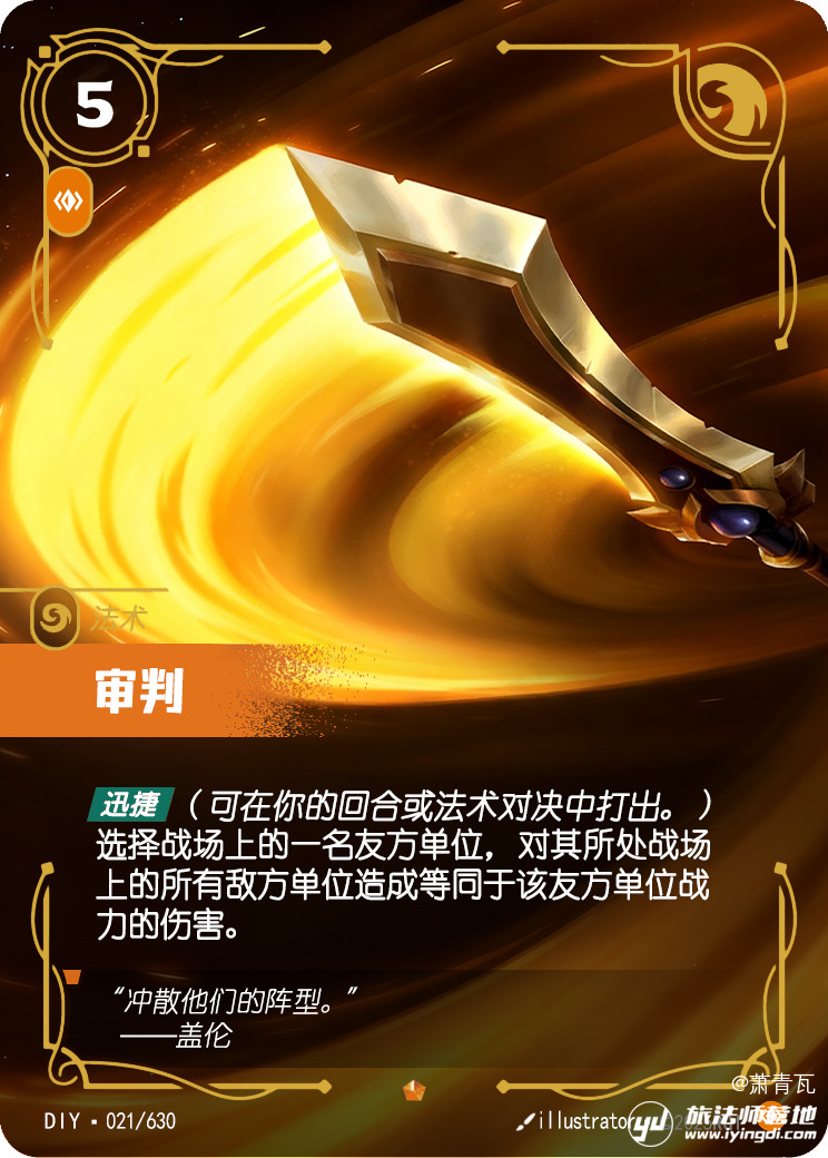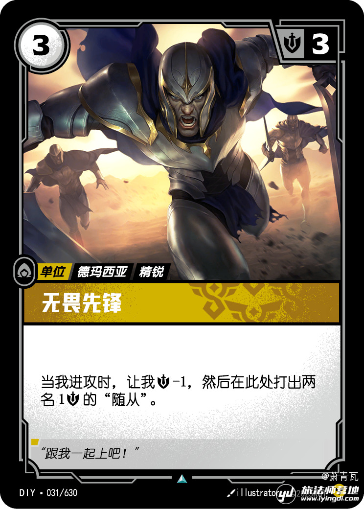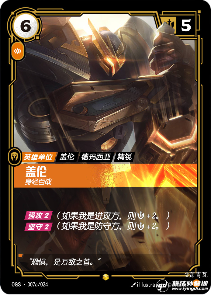 就当前环境,如果你惹怒了我,我将带着不少于四名单位征服一处战场并抽两张牌!这太难了,因此我参考lor设计了以下卡牌,称做“盖伦拯救计划1.0”。