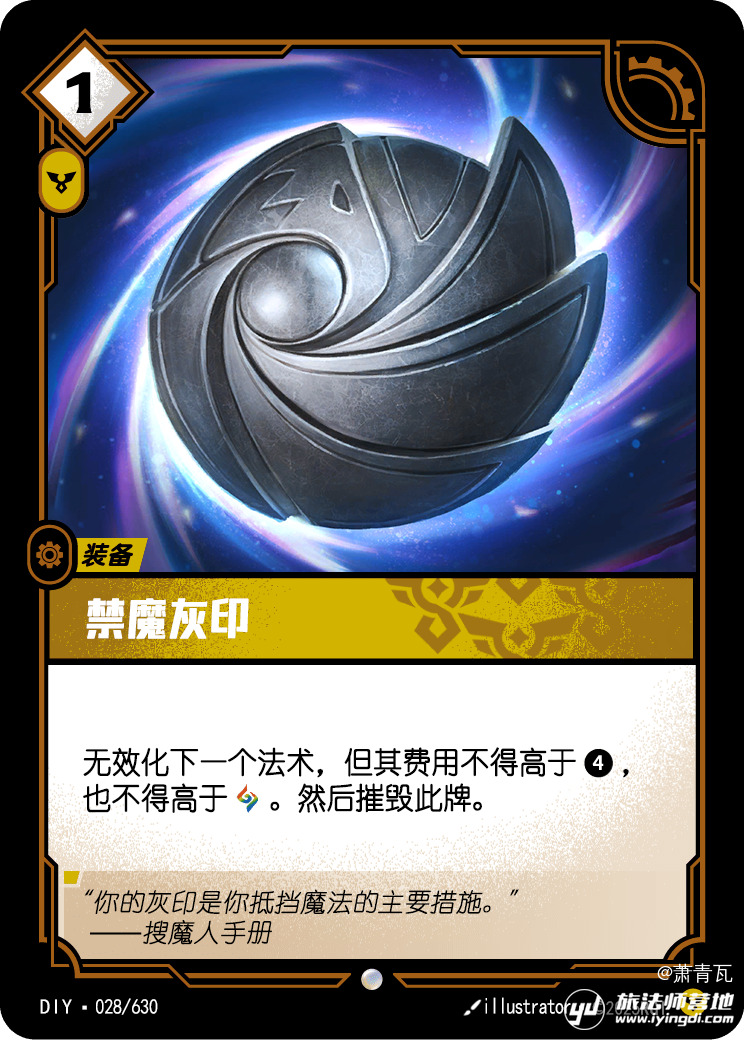 效果:无效化下一个法术,但其费用不得高于❹,也不得高于1符能。然后摧毁此牌。